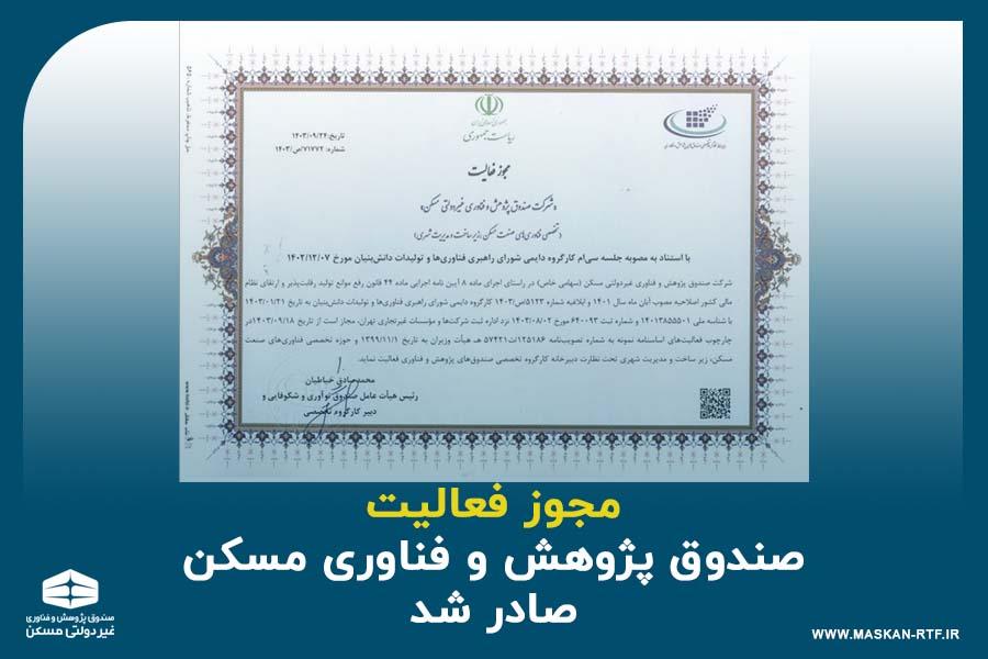 مجوز فعالیت صندوق پژوهش و فناوری مسکن صادر شد.